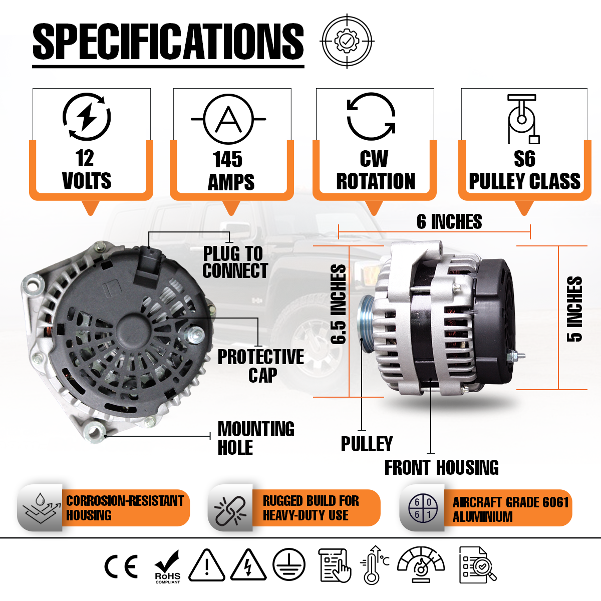 12V 145A Alternator fits GMC Yukon XL Chevrolet Tahoe Silverado 1500
